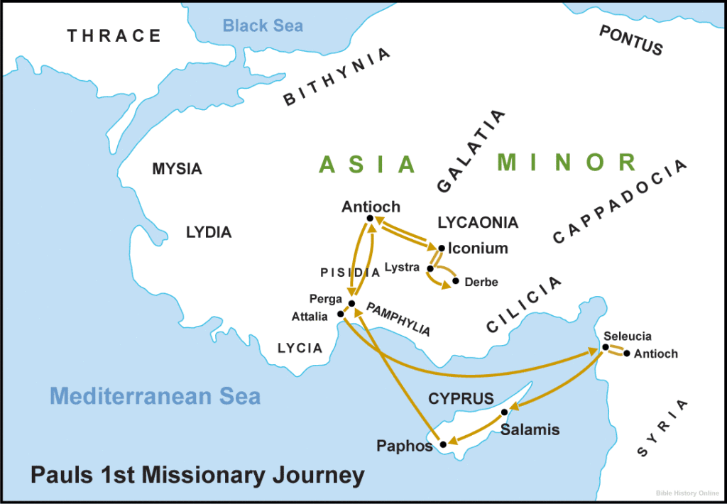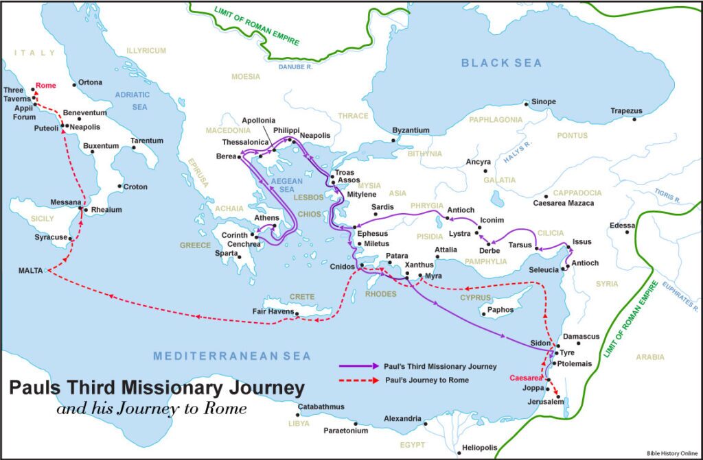 The itinerary of Paul’s three missionary journeys on with links to background on the cities and the reference in Acts.